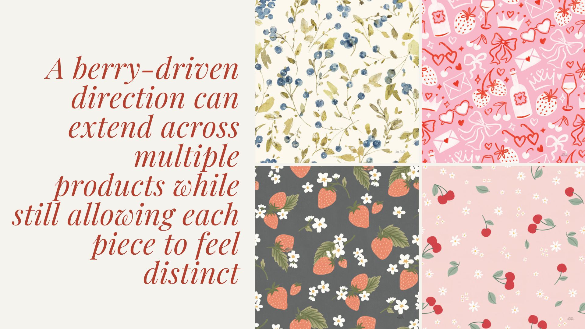 In art licensing, this translates into collections that feel more confident with color. Berry-inspired artwork naturally supports this shift, offering palettes that are both trend-forward and easy to integrate.