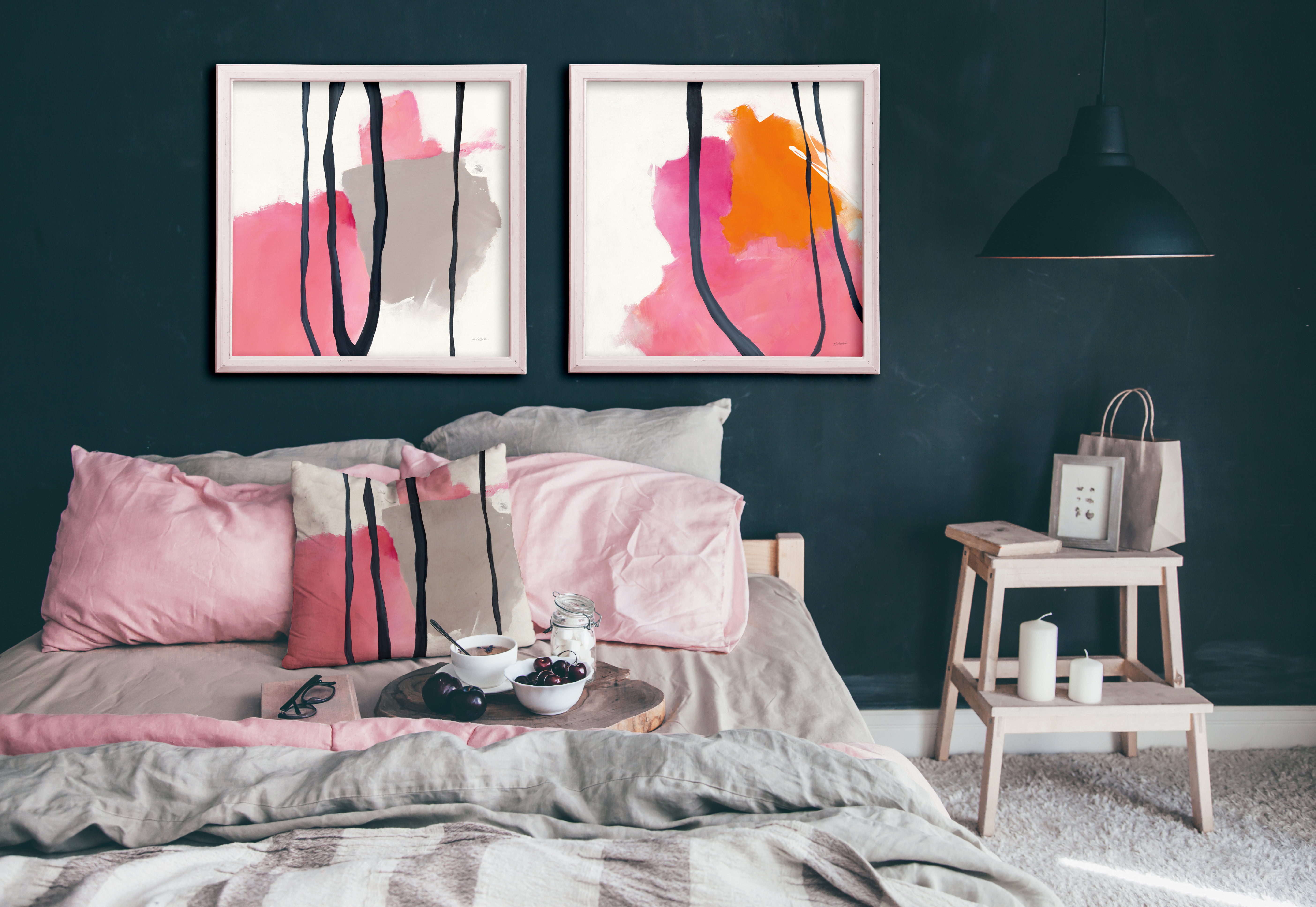 Pink and black abstract art print and Print on Demand