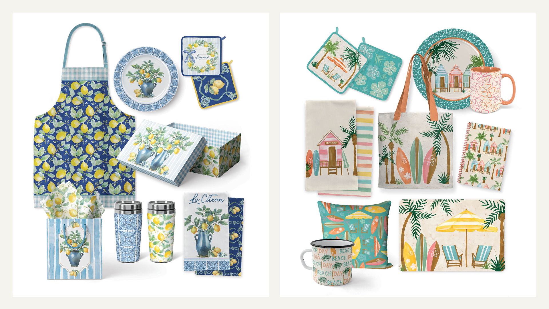 It’s a balancing act. Our clients in Europe might be leaning into Mediterranean motifs and vintage botanicals. Our North American partners might want bold, graphic florals and retro poster art. Our licensing model makes it possible for different manufacturers to use the same piece of art across non-competing categories, so a whimsical collection might end up on bath towels in Ohio and stationery in the Netherlands.