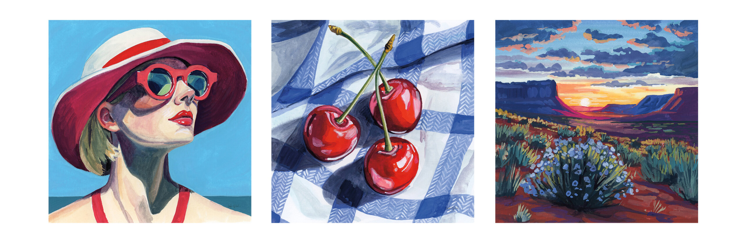 Her art has been featured worldwide in stores like Target, Pier One, and World Market, as well as in TV series and films including Transparent, Medium, Glee, and 21 Jump Street. For the past six years, she’s dedicated herself to her painting-a-day series, creating over 2,000 small gouache pieces—and she has no plans of stopping.