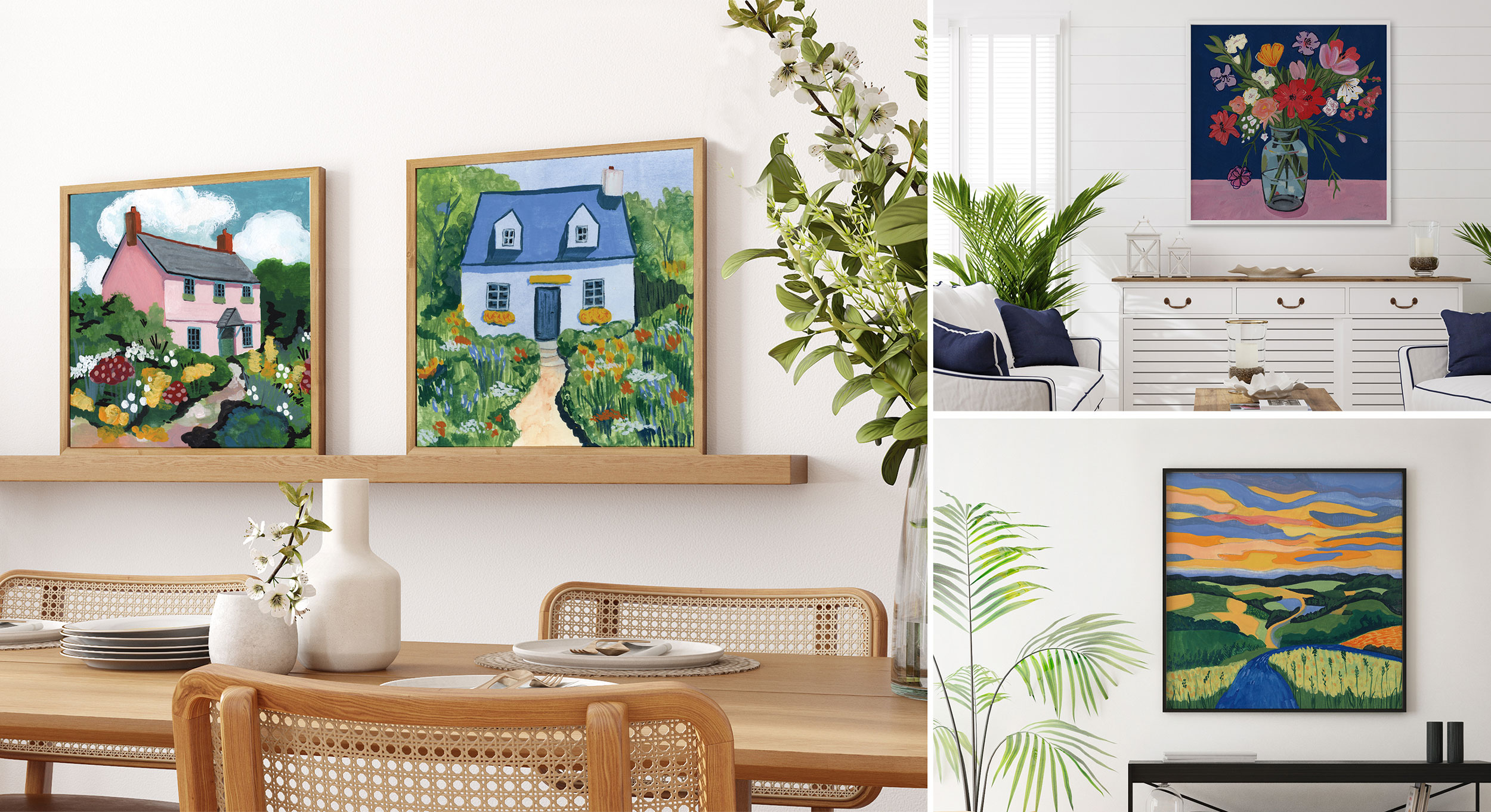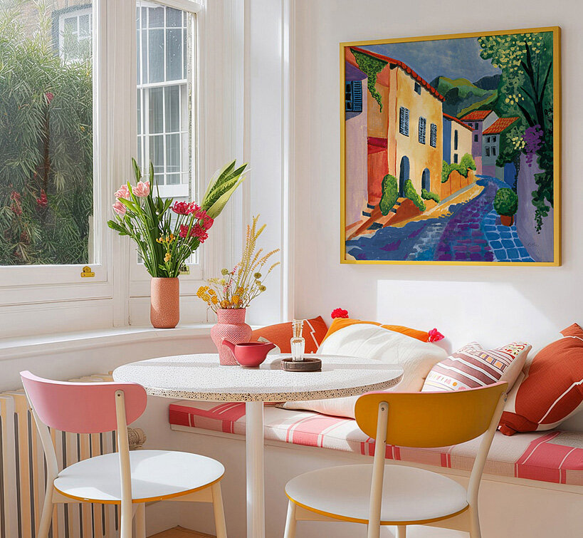 Whether she is painting from her living room couch or translating her signature style into tattoo art, Morgan finds inspiration in the joy of a morning coffee, travel, and walks in the park with her dog. These experiences spark her creativity and give her fresh colors, textures and stories to bring to her art. Her aesthetic is fresh, intentional, and undeniably joyful. She is the perfect choice for bringing a sense of life well lived into the home.