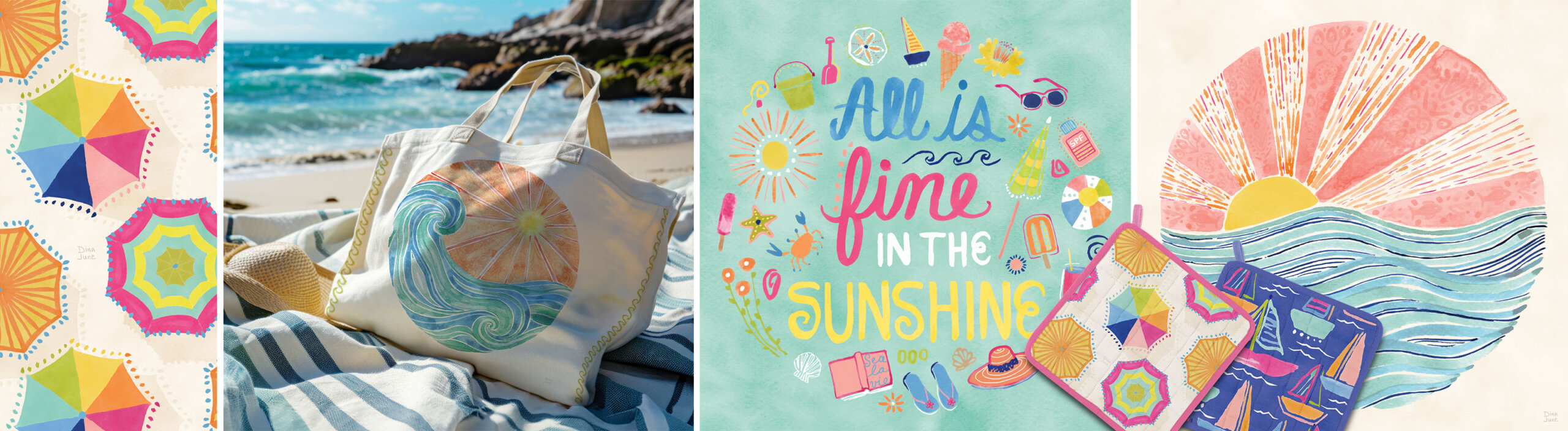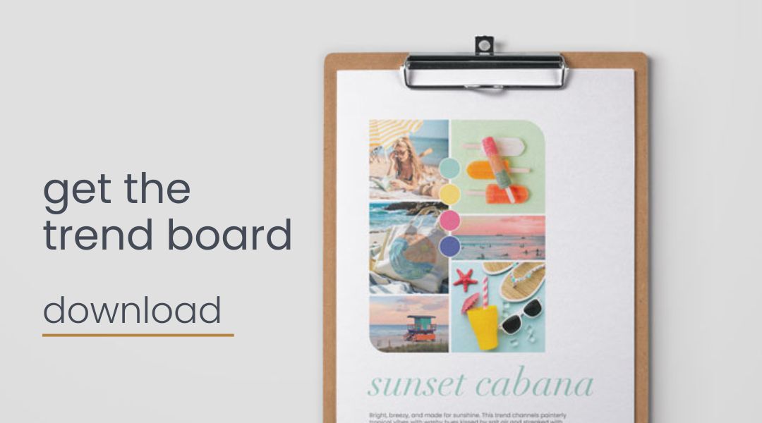 Bright, breezy, and made for sunshine. This trend channels painterly tropical vibes with washy hues kissed by salt air and streaked with sunset. Think coral pinks, golden yellows, and soft dreamy blues. Beach umbrellas, fruit punch palettes, and sun-faded stripes call to mind the perfect beach day at golden hour.