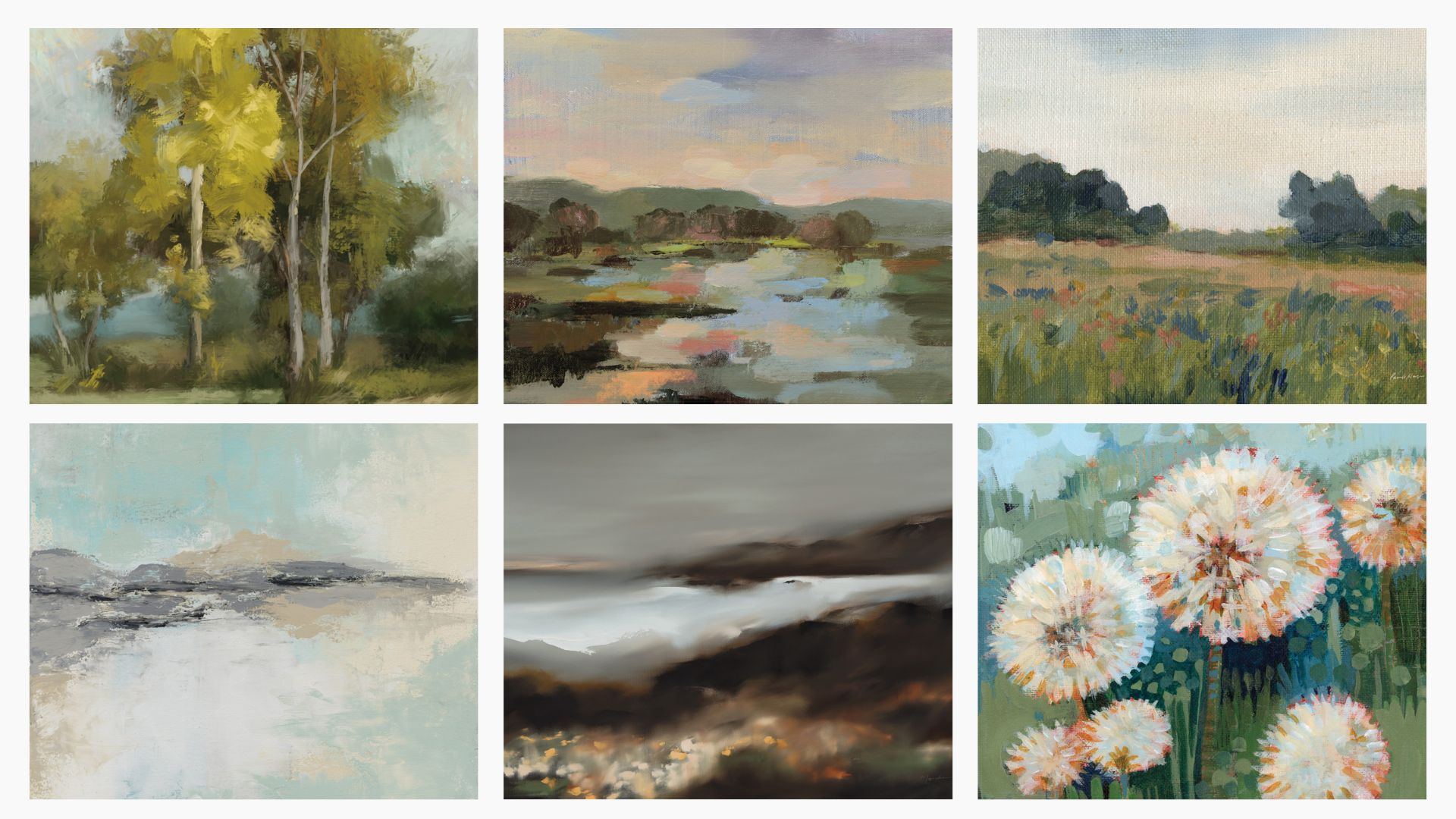 Designers need access to art that can operate as a system, not just as standalone pieces. At Wild Apple we have thousands of images available to license for projects. From traditional landscapes and florals to contemporary abstracts, seasonal, viral themes and more, we love helping our partners connect with the right art for their projects.